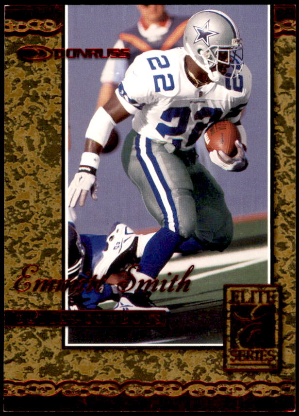Emmitt Smith began his spectacular NFL career after being drafted by the Dallas Cowboys out of the University of Florida. In 2002 Emmitt Smith became the NFL's all-time leading rusher by passing Walter Payton. He also has the most rushing touchdowns in NFL history. A certain hall of famer, Emmitt Smith has led the NFL in rushing 4 times, won 3 Super Bowl titles, League MVP in 1993, Super Bowl MVP (XXVIII) and has been selected to 8 pro bowls. Emmitt Smith's rookie cards are found in 1990 sets.