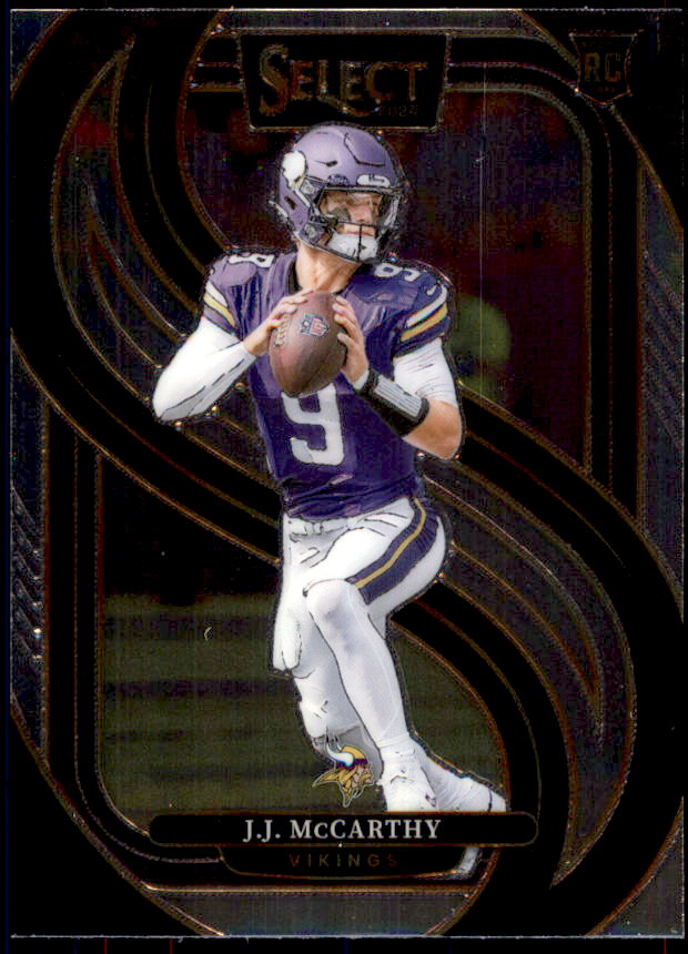 JJ McCarthy is a quarterback who played college football for the University of Michigan from 2021 to 2023. During his time with the Wolverines, McCarthy led the team to three consecutive Big Ten championships and back-to-back College Football Playoff appearances. In 2023, he guided Michigan to a national championship victory over Washington. McCarthy was named to the All-Big Ten Second Team in 2023 and finished his college career with 6,226 passing yards and 49 touchdowns. He was drafted by the Minnesota Vikings in the first round of the 2024 NFL Draft. McCarthy's rookie trading cards are in 2024.