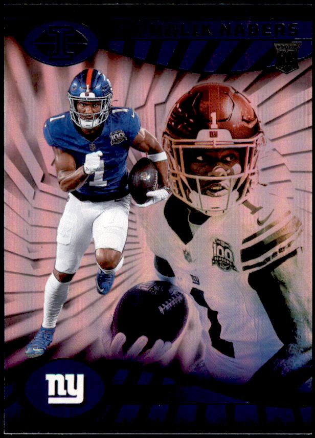 Malik Nabers is a wide receiver who played college football for the Louisiana State University (LSU) Tigers. During his collegiate career, Nabers established himself as a standout player, earning First-team All-SEC honors in 2023. He finished his time at LSU with impressive statistics, including 189 receptions for 3,003 yards and 21 touchdowns. Nabers was selected by the New York Giants with the 6th overall pick of the 2024 draft. His rookie trading cards in 2024 sets.