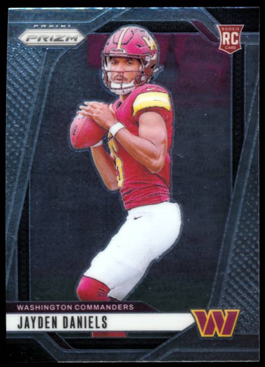 The 2024 Panini Prizm football card set consists of 400 cards. There are 300 base veteran and legends cards and 100 rookie cards. Top rookies include Jayden Daniels, Caleb Williams, Drake Maye, Bo Nix and more.