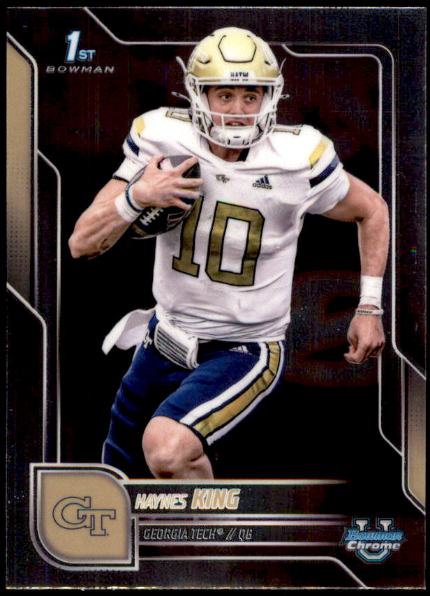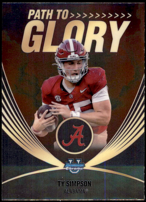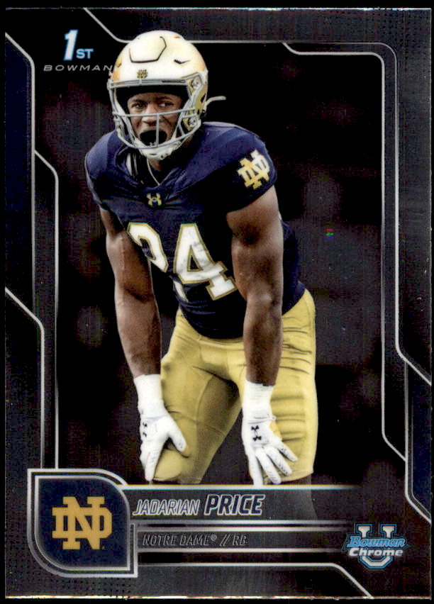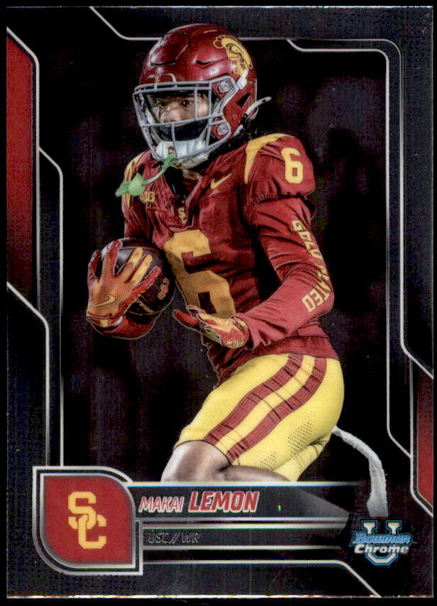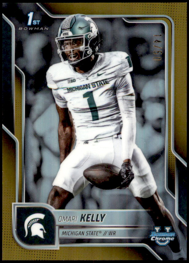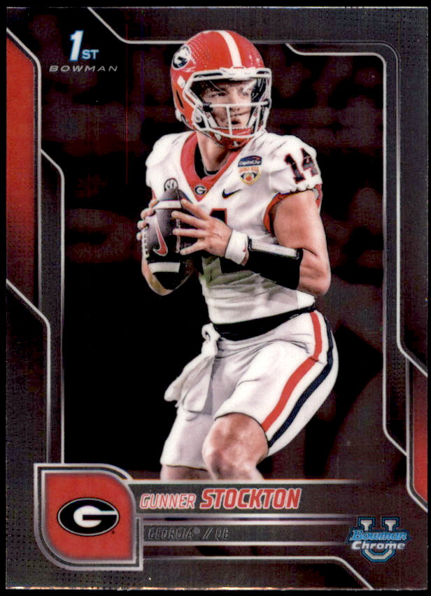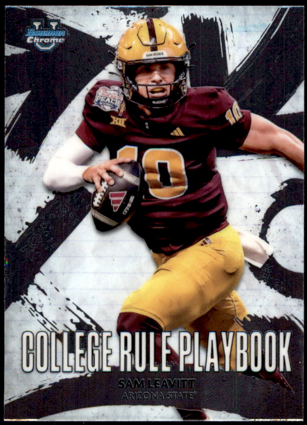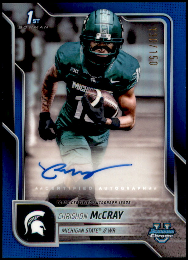The 2025 Bowman Chrome University football card set consists of 200 cards. It includes cards of the top college stars including Fernando Mendoza, Diego Pavia, Bryce Underwood, John Mateer and many others.