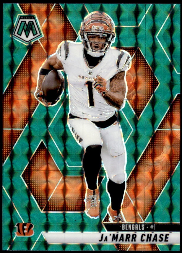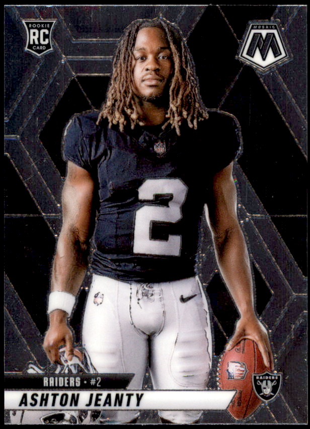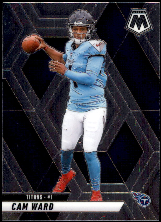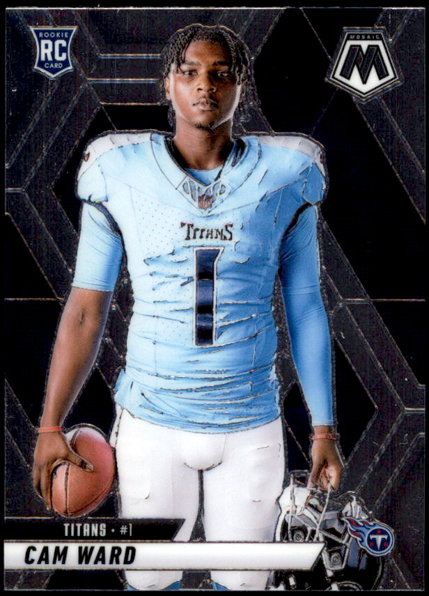 The 2025 Panini Mosaic football card set consists of 400 cards. It includes veterans, legends and rookies. Top rookies include Cam Ward, Jaxson Dart, Travis Hunter, Ashton Jeanty, Cam Skattebo and many others.