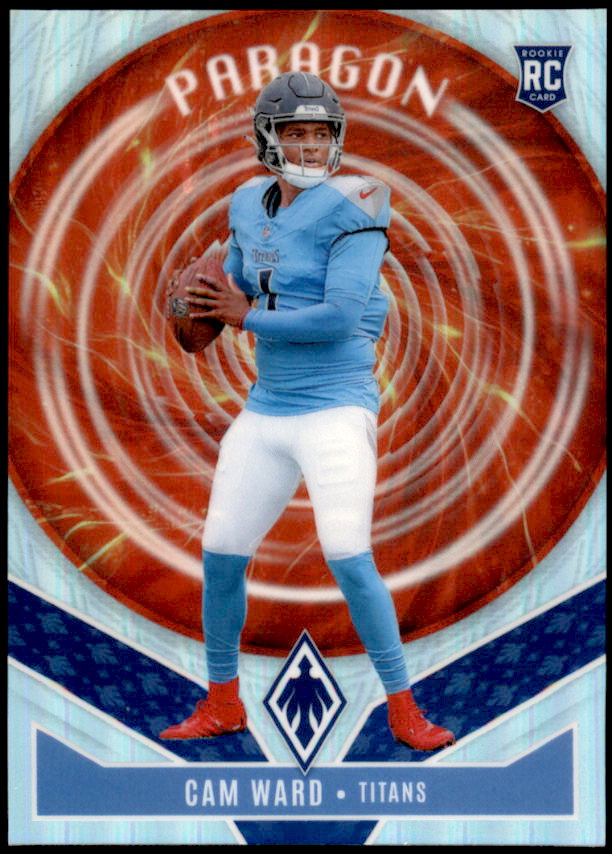 The 2025 Panini Phoenix football card set consists of 250 cards. It includes 150 base veteran and legends cards and 100 rookie cards. Top rookies include Jaxson Dart, Cam Ward, Shedeur Sanders, Cam Skattebo and many others.