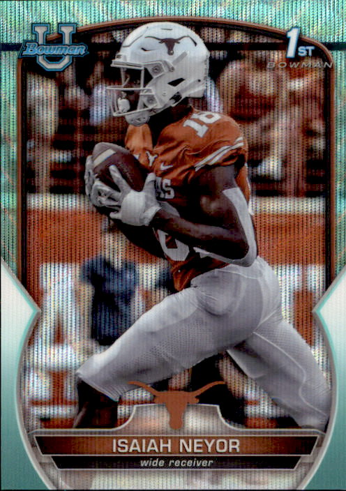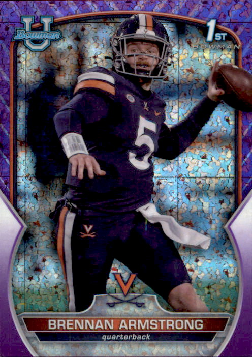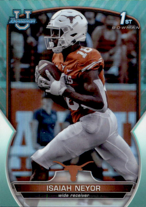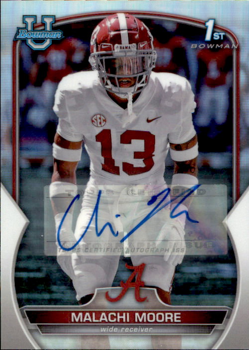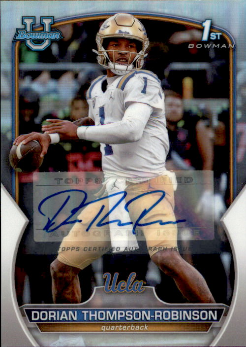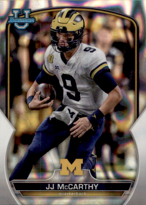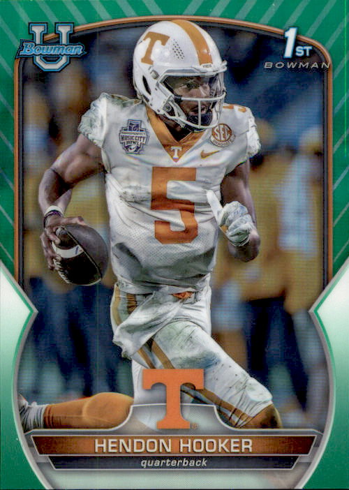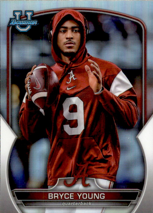 The 2022 Bowman Chrome University set consists of 100 cards. It contains a combination of 2023 rookies and players still in college. Top players include Caleb Williams, CJ Stroud, Bryce Young, Hendon Hooker and others.