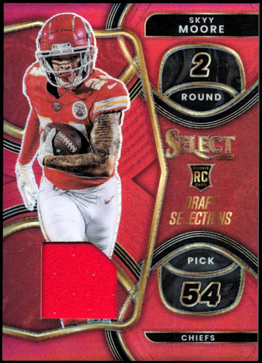 The 2022 Select set consists of over 500 cards. It contains different levels of scarcity. Top rookies include Kenny Pickett, Brock Purdy, Garrett Wilson and many others.
