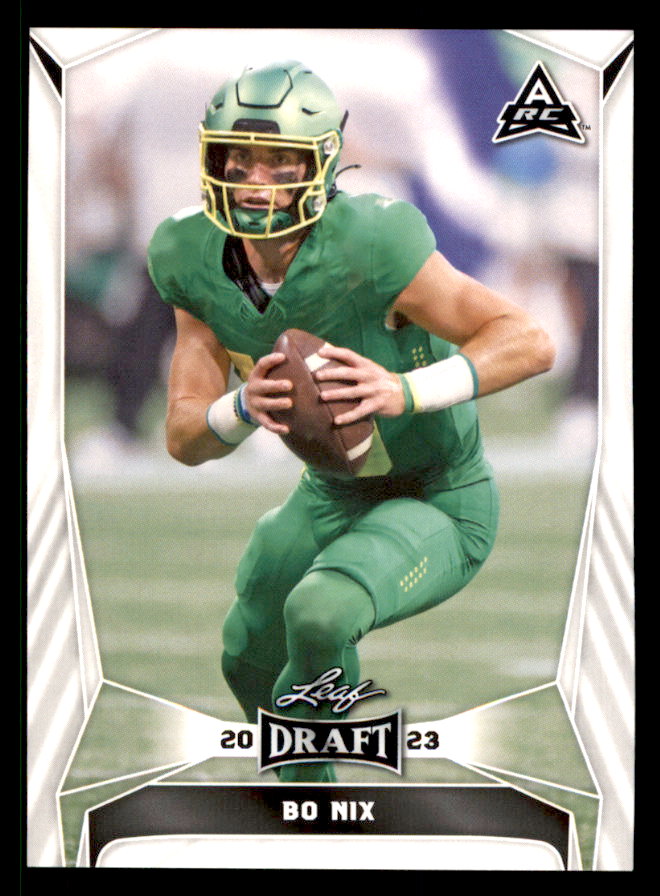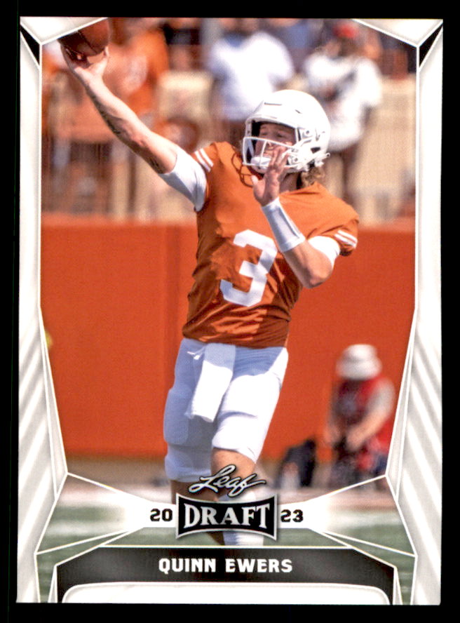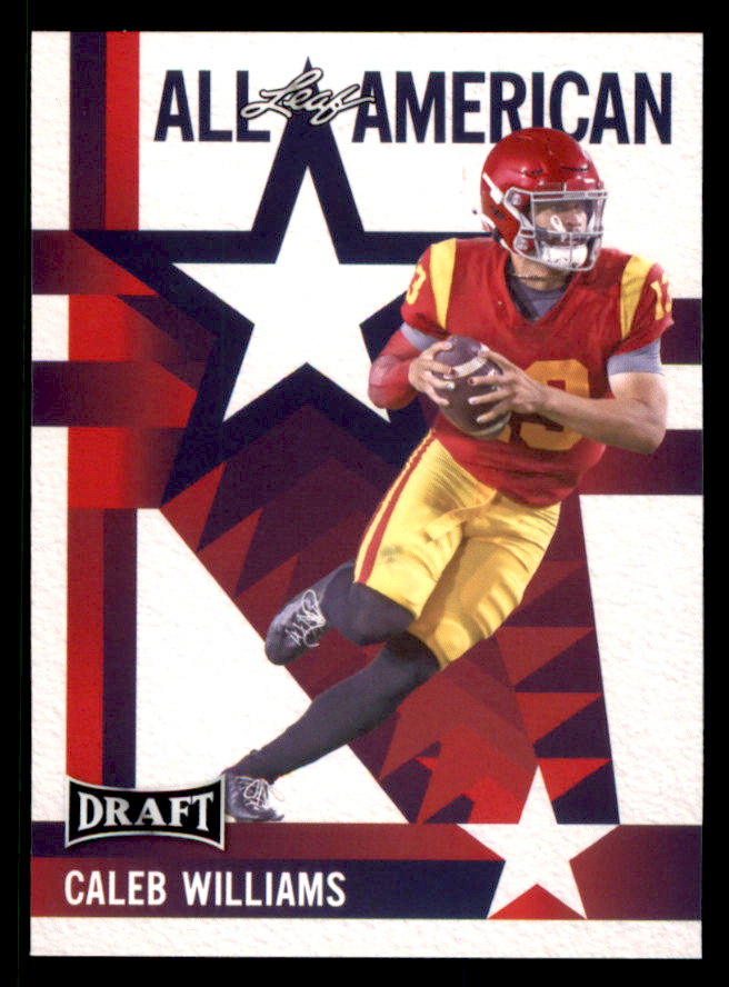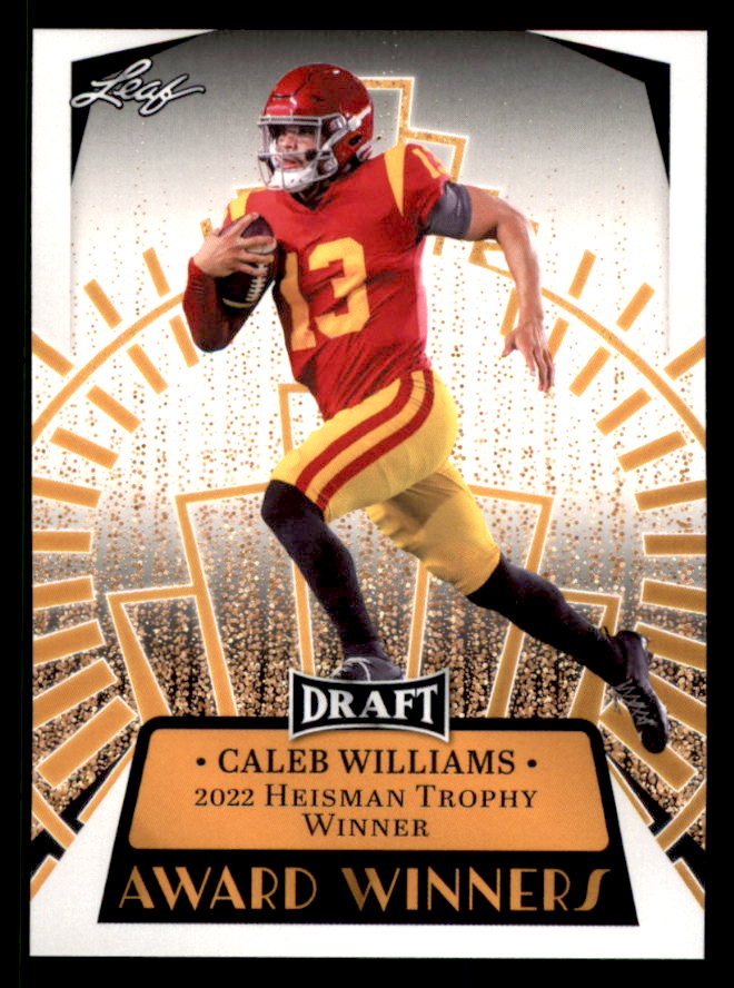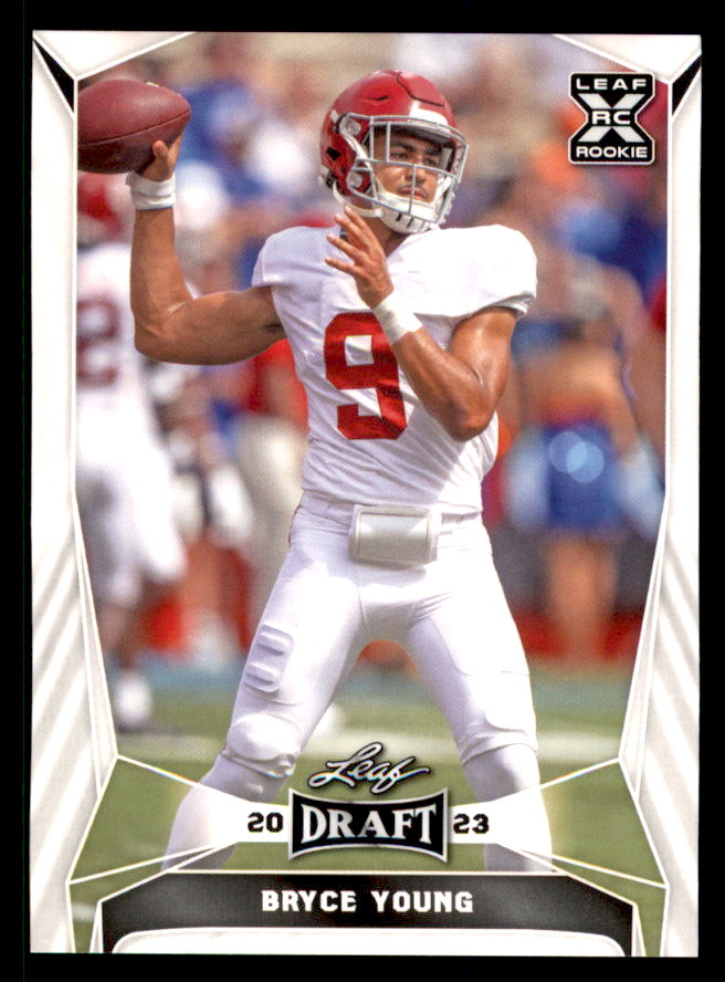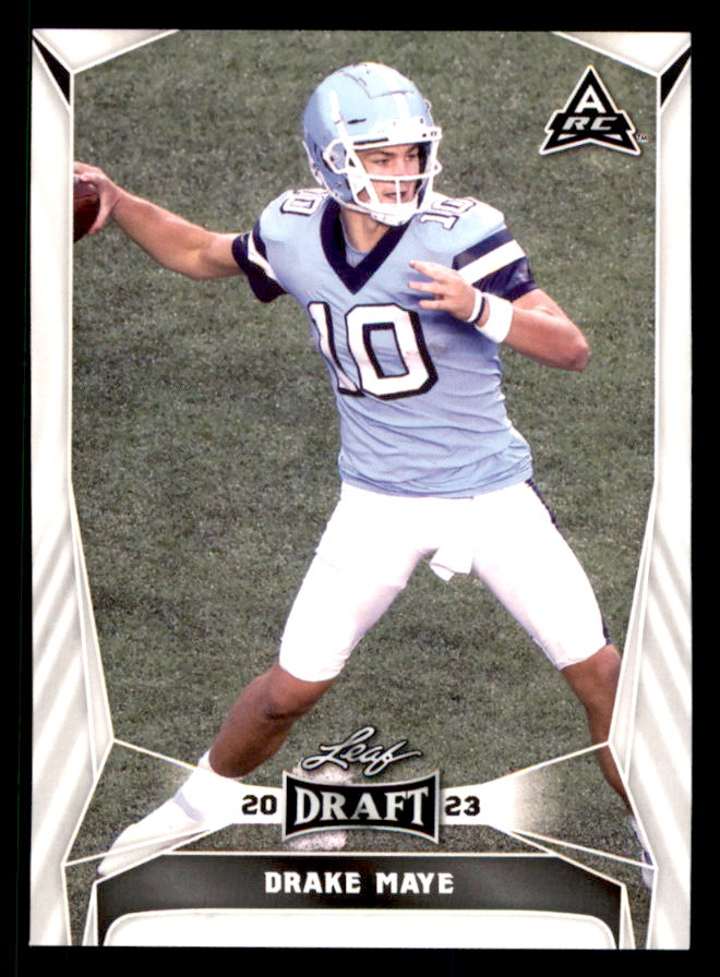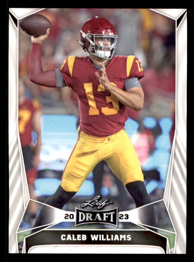 The 2023 Leaf Draft football card set consists of 100 cards. It includes top rookies of 2023, veterans and legends and top players still in college. Players include Bryce Young, Caleb Williams, Drake Maye and many others.
