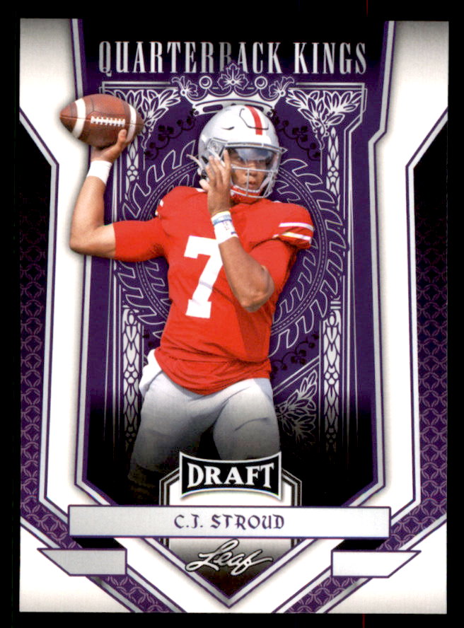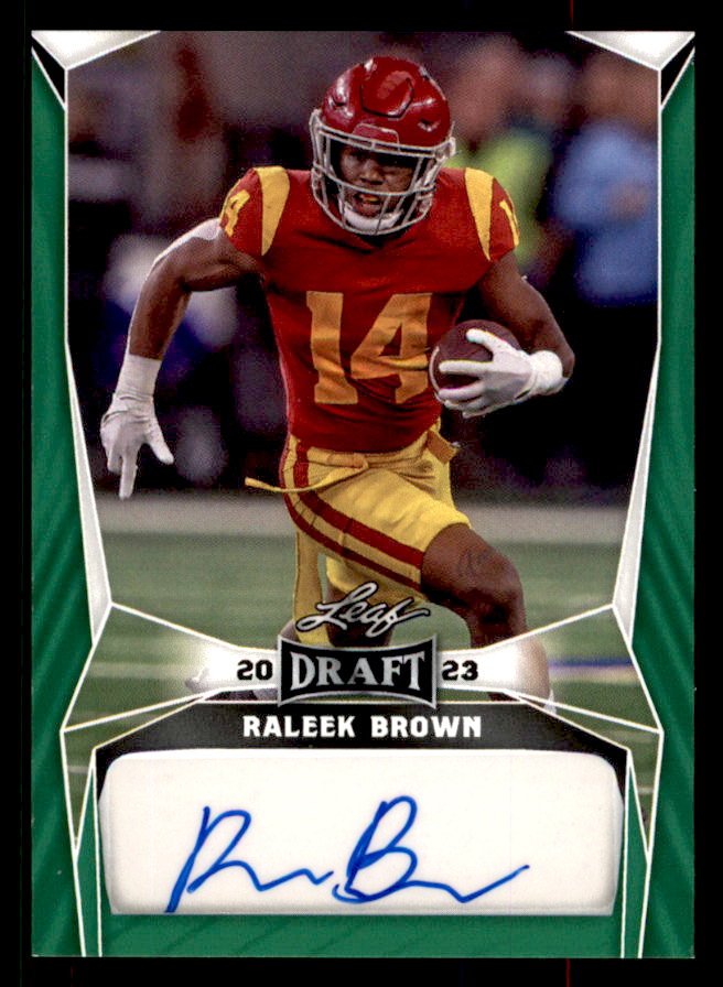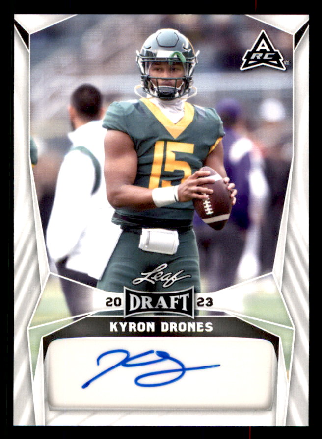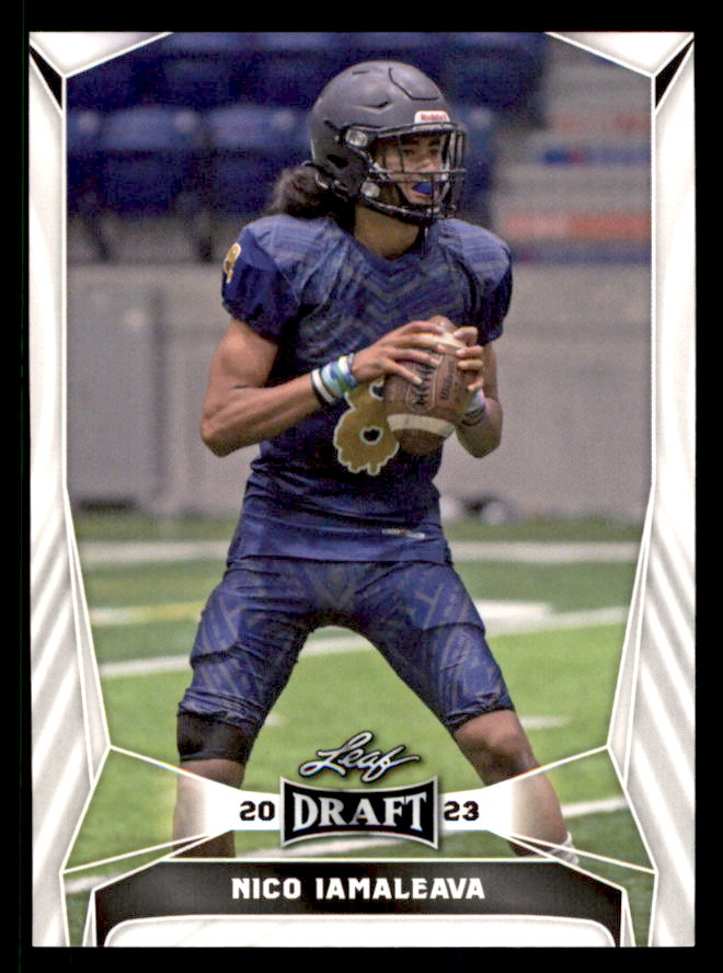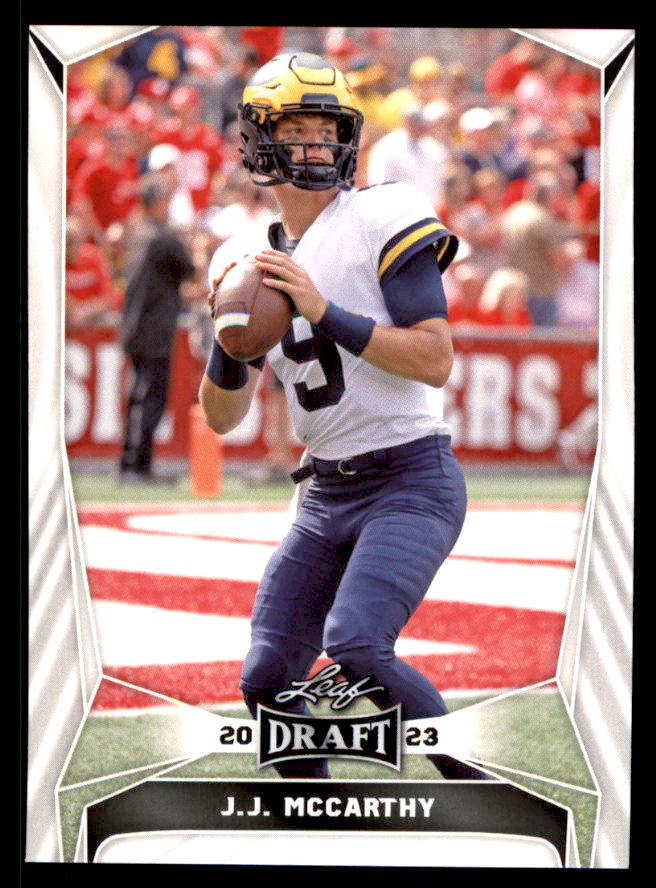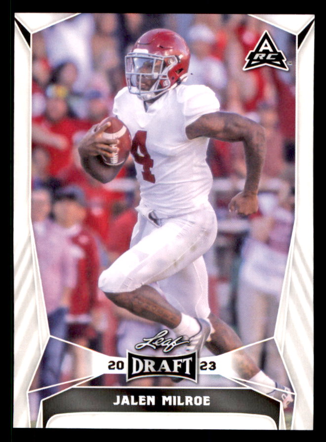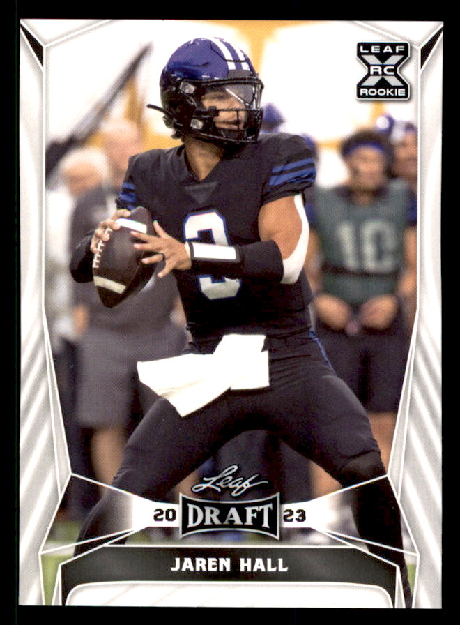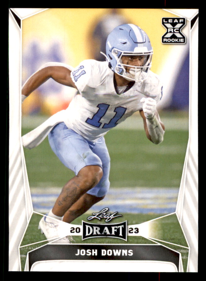 The 2023 Leaf Draft football card set consists of 100 cards. It includes top rookies of 2023, veterans and legends and top players still in college. Players include Bryce Young, Caleb Williams, Drake Maye and many others.