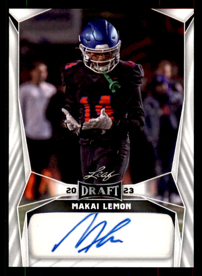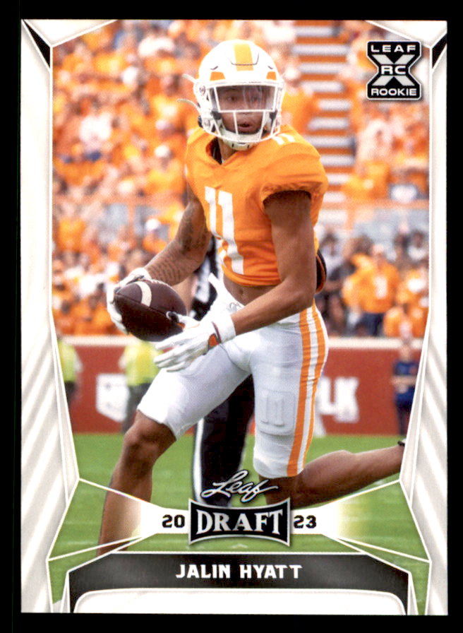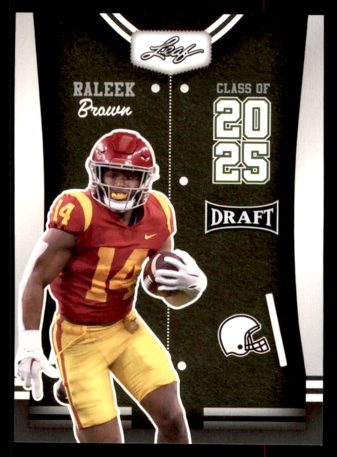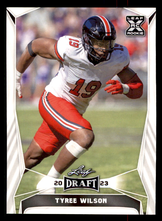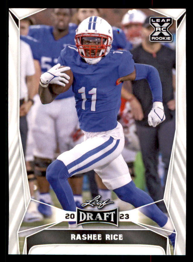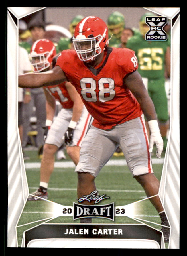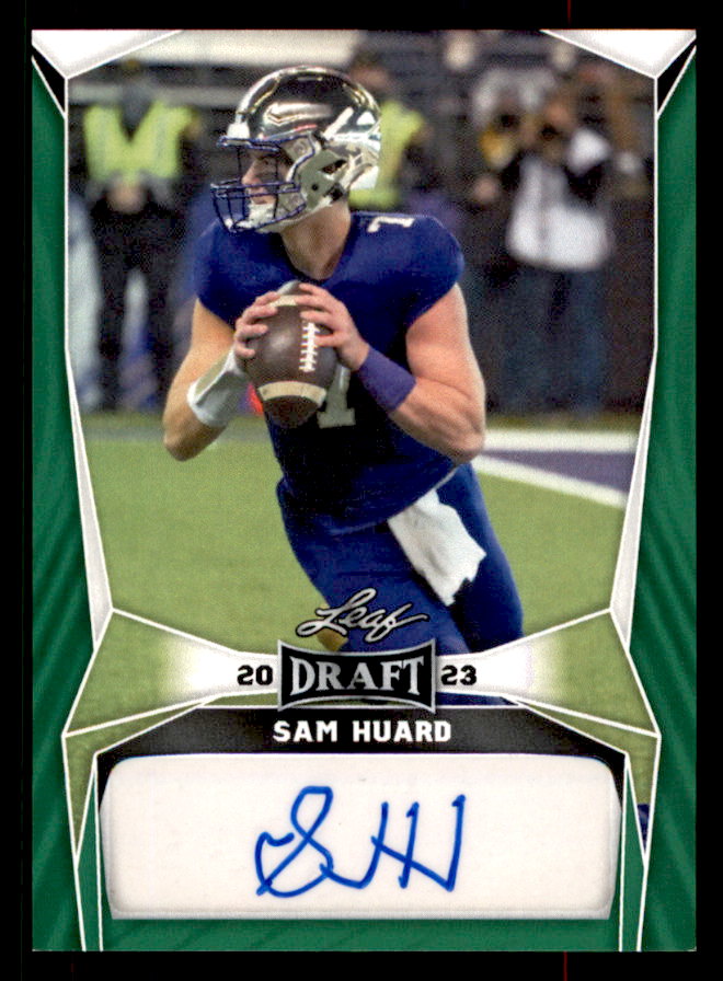 The 2023 Leaf Draft football card set consists of 100 cards. It includes top rookies of 2023, veterans and legends and top players still in college. Players include Bryce Young, Caleb Williams, Drake Maye and many others.
