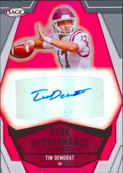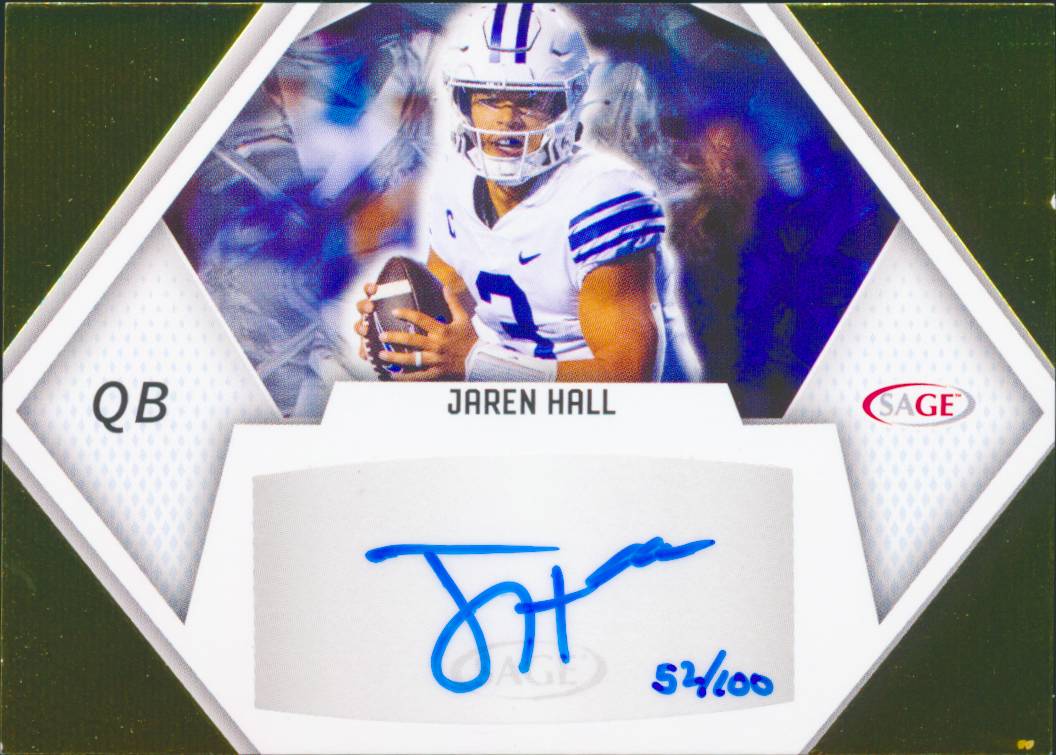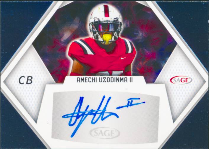 The 2023 Sage football card set contains 200 cards. It contains cards of players from the 2023 NFL Draft and players still competing in college. Top players include C.J. Stroud, Bryce Young, Hendon Hooker and more.