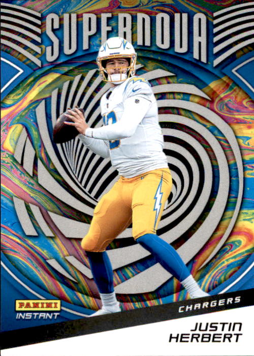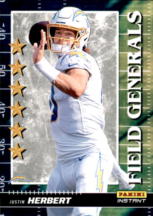 Justin Herbert is the starting quarterback for the Los Angeles Chargers in the NFL. He played college football at the University of Oregon, where he was a four-year starter and won the 2019 Pac-12 Championship. Herbert was selected sixth overall by the Chargers in the 2020 NFL Draft. In his rookie season, he set several NFL records and won the AP NFL Offensive Rookie of the Year award. He was named to the Pro Bowl in 2021 and has continued to impress with his strong arm and accurate passing. Herbert's rookie trading cards are from the 2020 season.