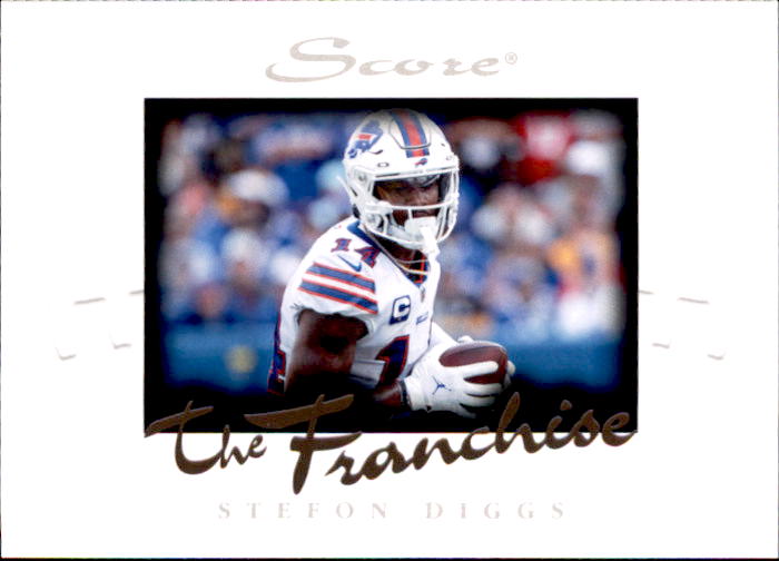 Stefon Diggs attended the University of Maryland. He was selected by the Minnesota Vikings in the fifth round of the 2015 NFL Draft. After several productive seasons with the Vikings, Diggs was traded to the Buffalo Bills in 2020. He quickly became one of the league's top wide receivers, leading the NFL in receptions and receiving yards in 2020 and earning First-team All-Pro honors. He has also been selected to the Pro Bowl multiple times. His rookie cards are in 2015 sets.